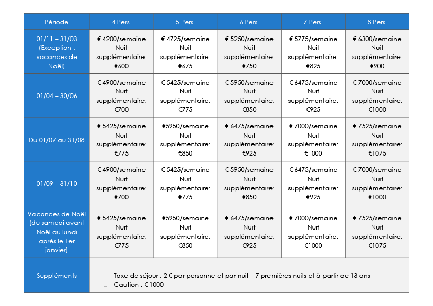 La terrasse spacieuse est équipée d’un mobilier d’extérieur luxueux, de chaises longues et d’une grande table à manger. La piscine (infinity) privée chauffée à l’eau salée (30 °C, prix inclus toute l’année), combinée au climat doux, offre un confort de baignade exceptionnel tout au long de l’année.